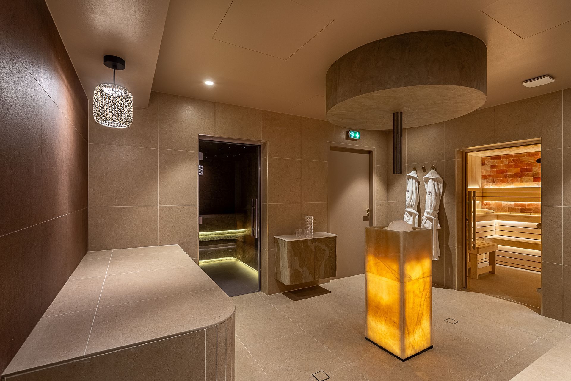 Ce spa comprend 3 cabines de soins dont une double, une salle de repos – tisanerie, un espace Spa contenant un hammam, un sauna avec mur de sel, une fontaine à glace, une douche sensorielle, une douche froide et des banquettes chauffantes.